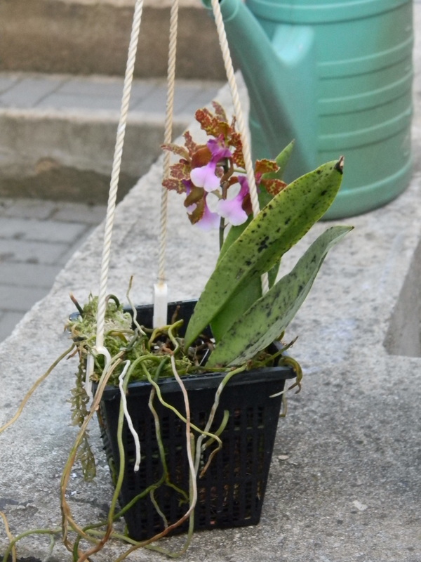Lophiaris lanceana - dávám fotku celé rostliny, foceno v rychlosti jen pro představu. Listy 15 cm (když jsem ji ale koupila, byly původní listy 25 - 30 cm), pěstováno v květináči na vodní rostliny. Substrát - nastříhané kokosové vlákno, větší kousky kůry, kamínky, nějaký kokočips. zasypáno do necelé půlky květináče. navrch trochu rašeliníku. Mám ji cca 4 roky, několikrát jsem ji téměř zahubila. Měla jsem ji vyvázanou "hlavou dolů", to nefungovalo, nový list začal růst nahoru. přemontováno, po čase přesazeno do květináče. V té době pěstováno doma na parapetu. před dvěma lety (po dostavbě skleníku) přesazeno do "vodního květináče" a přestěhováno do skleníku. Ještě v bytě se mi ho snažilo cosi sežrat, při focení jsem natočila tak, aby byly vidět staré, poškozené listy. Čistý list vyrostl letos a vzápětí se začal klubat květní stvol. Umístěný je na skoro nejsvětlejším místě. Pořádně růst začalo až ve vodním květináči, kořeny prorůstají ven. předtím kořeny uhnívaly zároveň i upadly staré původní listy. proto asi jako nejdůležitější považuji ten květináč, kdy rostlinu buď namáčím nebo rosím na kořeny a kořeny následně rychle oschnou.