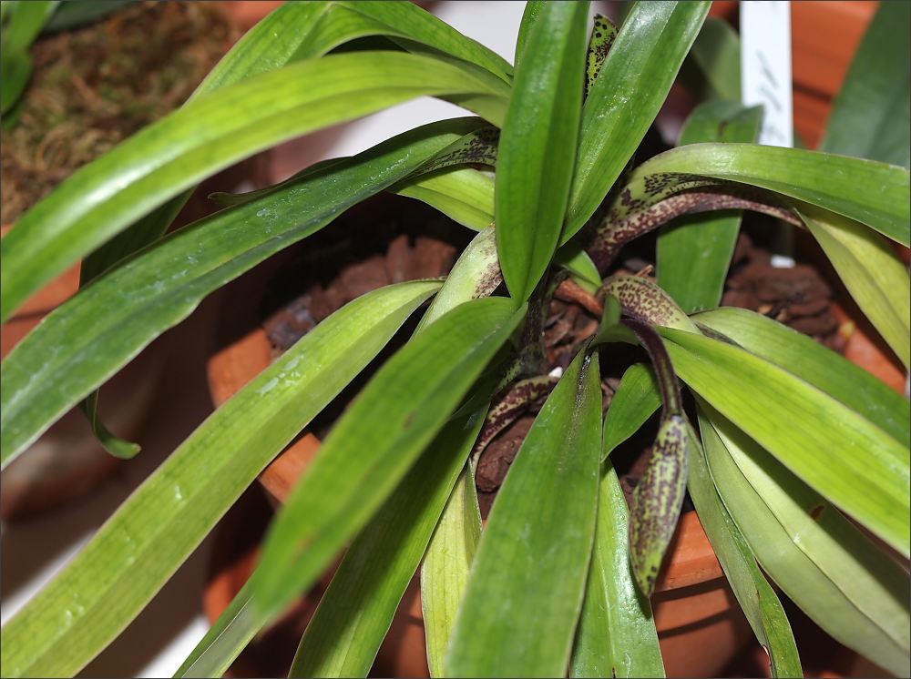 Asi bude záležet na tom,jak je orchidej pěstovaná a kde.Když se mi stejným způsobem začalo naklánět calosum,dal jsem ho do intermediální zóny ,přisušil ho-a bylo mu dobře... :oops:(Moje blbost,mělo tam být od začátku... :!: )
