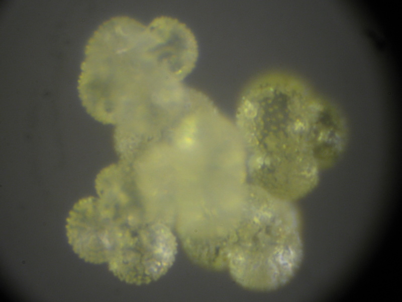 Zkusil bych napsat něco málo k mikroskopování (a focení). Přístroj z Aukra je monokulár s malým objektivem (nebudu hodnotit kvalitu), což je na malé vzorky, které nejsou trojrorměrné a "nezabírají moc místa" (výřez bude asi dost malý). Při troše cviku jde fotit i ze stativu - jen to chce pořídit okulár s velkou čočkou. Fígl focení přes mikrák je v tom, že se musí vytáhnout zoom, jako když chcete něco přiblížit.