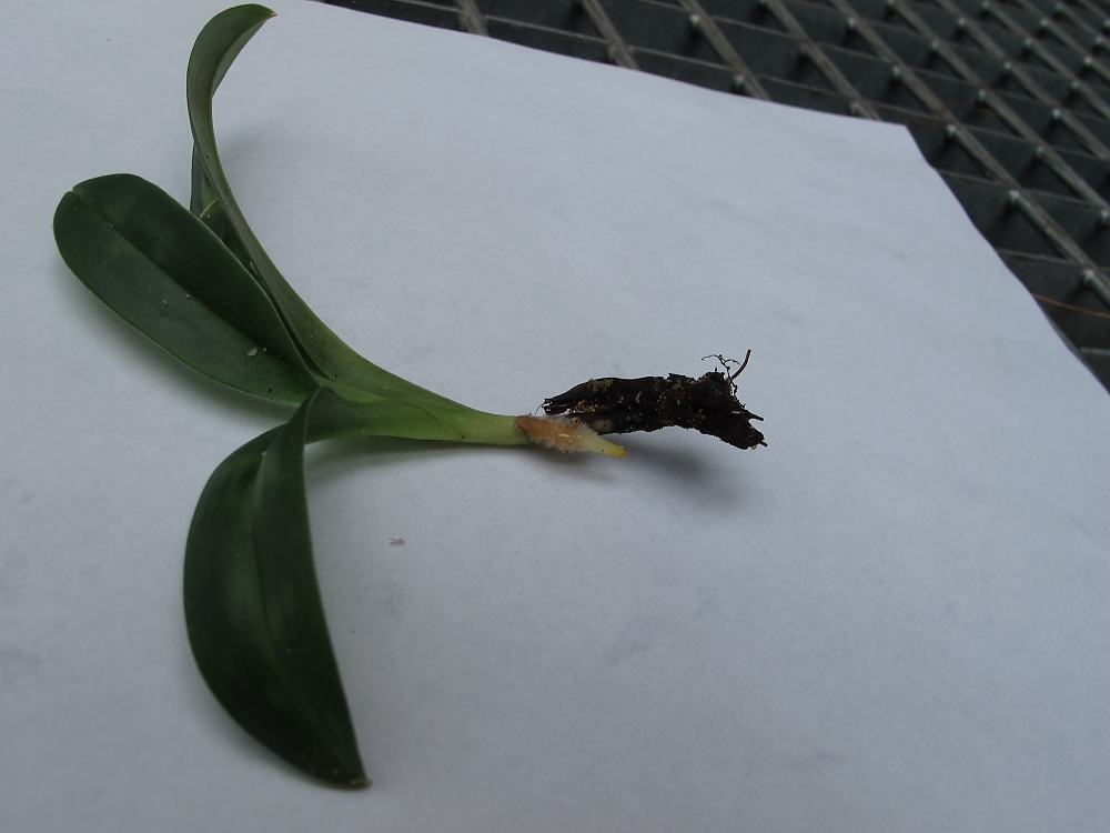 Paphiopedilum purpuratum je bez kořenů.Trošku mě mate –nemá moc výraznou kresbu na listu-no uvidíme. Moje "docela" osvědčená metoda(každý se časem dopracuje ke své vlastní)je okno na východ v kuchyňi sáček v něm rašeliník a na tom trůní pafíčko.V noci při poklesu teplot otevřít sáček ve dne zavřít(možná je to i opačně