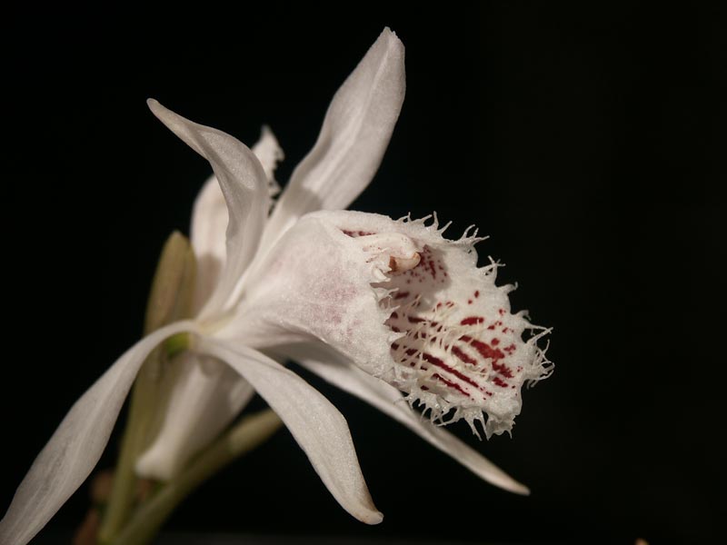 Málo pěstovaný kulivar Pleione Tsingtau právě kvete.