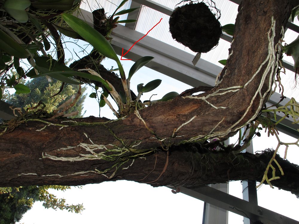 Brassocattleya- přesný název nemám ani nebudu mít ale to neva. Tak ty kořeny .Brassocattleya je navázaná na akátovou větev kořeny zalezly pod tu větev kde vůbec nerosím. A jsou tam hezčí než nahoře a srandovní tím růstem úplně jinam než bylo naplánováno :mrgreen: