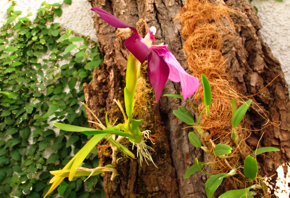 Jo jo - Miltonia spectabilis var. morelliana -tahle kytička roste dost neukázněně tzv. na všechny strany.Proto jsem ji na jaře rozdělila na dvě části.Jedna je navázaná na kůře kde se může ukázat (foto) druhou mám níž na původním místě kde taky kvete. Jsem zvědavá kde poroste líp .