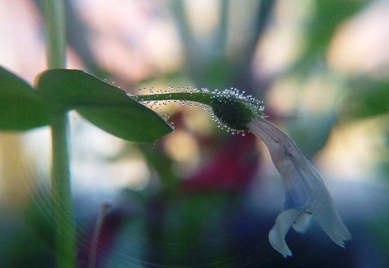 Kvet Lindernie je veľký sotva 1 cm. Jeho zaujímavosťou je, že je pokrytý lepkavými kvapkami, podobne, ako napr. rosnatky - i keď to nie je mäsožravá rastlina