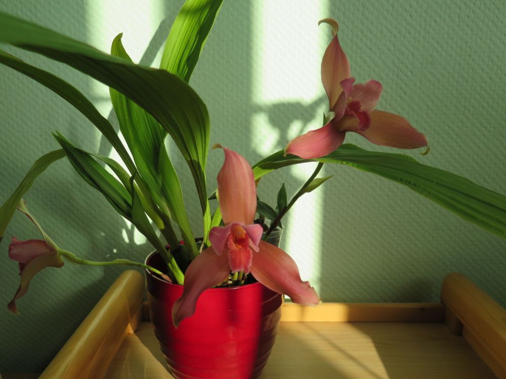 A kdo má dost místa - hybridní lycasty jsou zřejmě hodně vděčné, tahle kvete několikrát do roka, teď kvetou dokonce 4 květy naráz.