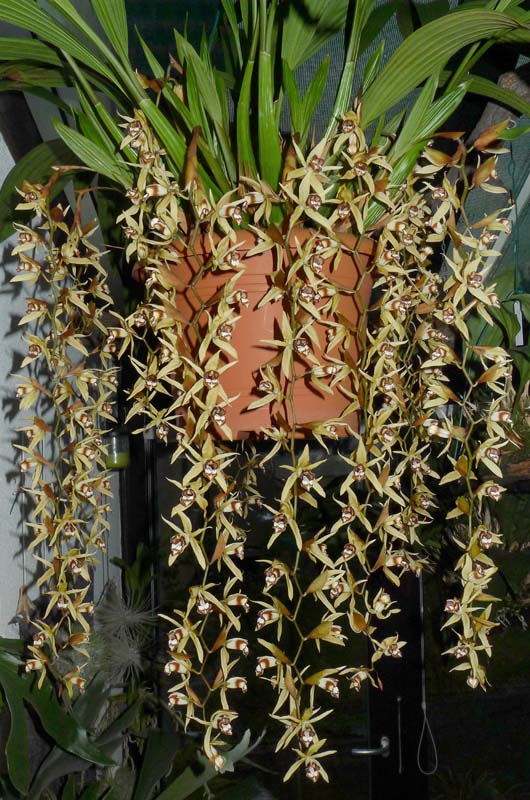 prosím tě koukni na tohle Bulbophyllum lobbii dala jsem ho přímo pod ledky myslíš že se trošku připekl či co.V létě mu slunko nevadí pravda na východní stranu .Ty tmavší flíčky to je asi chladno ale ten světlejší pruh.Je to focený bleskem tak barvy nejsou až tak výrazný.