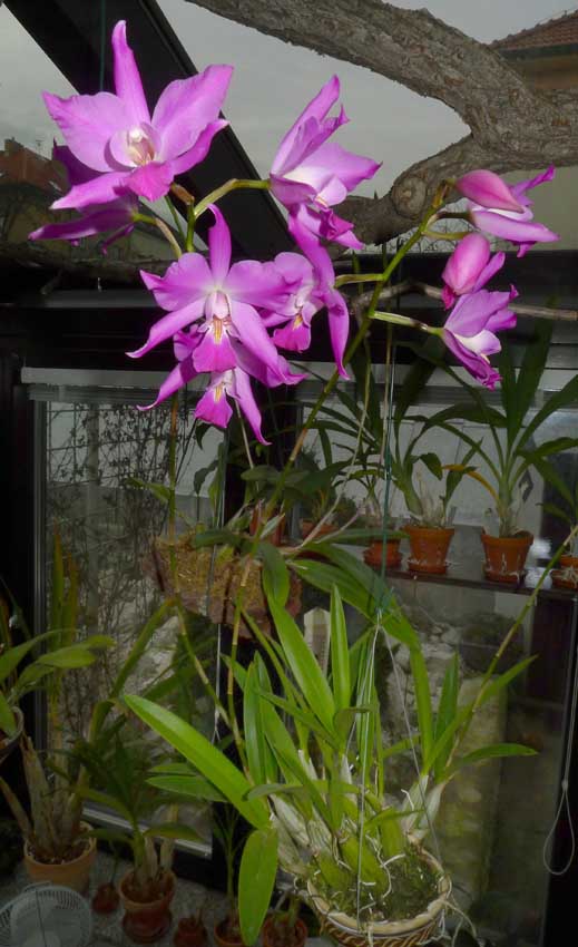 No nevím jak kdo má se světlem zkušenosti. Stačí se podívat na rostliny co běžně potřebují více světla. Cattleja která má za normálních okolností květ 17 cm a vydrží kolem 3 týdnů tak teď před vánoci vykvetlá má jen 12cm a vydrží týden. Takže mně docela mrzí jak brzy vadnou. Snad jen pestrolisté Paph. netrpí nedostatkem světla. Zkoušel jsem před mnoha lety dosvětlovat (prodlužoval jsem den) několik rostlin ale v té době nebylo nic krom zářivek. Pokud zářivka procházela mezi listy byl efekt skoro 100%. Náklady vysoké. Jedna starší fotka