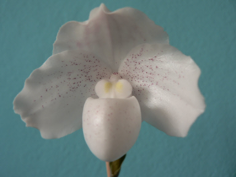 Ne moc vydarene fotky meho prvniho vydareneho kveteni "botaniky". Paphiopedilum niveum.