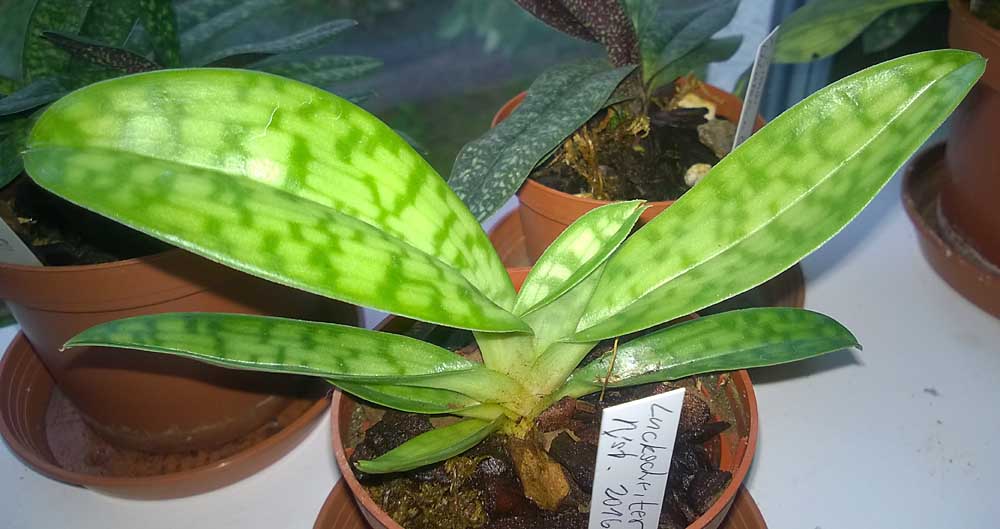 Haki: Na výstavě v Chotči jsem si na Tebe vzpomněl, když jsem kupoval rostlinu Paphiopedilum acmodontum. Rostlina mne zaujala barvou květu na přiložené fotografii a také strakatými listy. Tak jsem si řekl, že si ho pořídím. Do té doby jsem nevěděl, že nějaké acmodontum vůbec existuje. Proč to ale píši: Botanické orchideje tam měli na plném slunci a ta pafíčka měla takové nažloutlé listy. Říkal jsem si, že to asi bude takový žlutozelený druh. Doma jsem ale koukal na Google a tam je většina rostlin zelenějších a tak mne napadlo, jestli to není také z nadměrného osvětlení. Posílám foto.