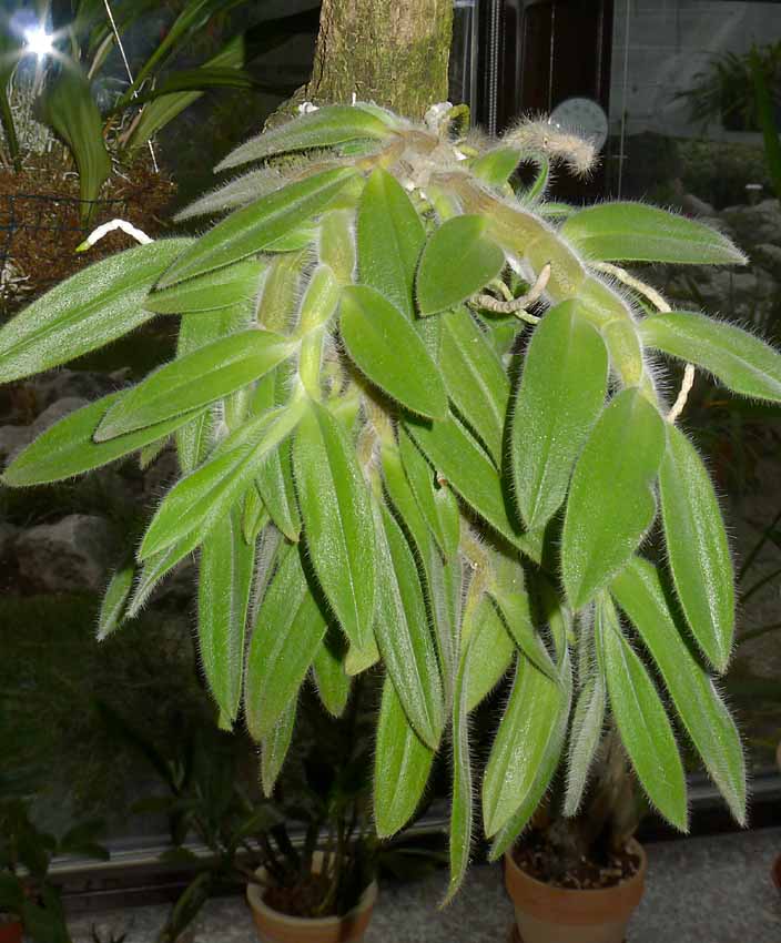 Až se tu bojím to své vystavit. Kytka je na bloku slepeného korku, každoročně v srpnu počne vyhánět nové pahlízy a kořeny, nicméně jsou takové nedužívé. Asi málo chemické podpory.