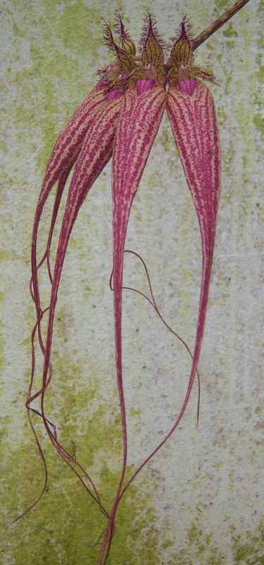 Bulbophyllum Elizabeth Ann ´Jean´ květ jsem našla náhodou, schoval se až k zemi a navíc stvol prorostl drátěnkou, takže nejde přemístit pro lepší focení