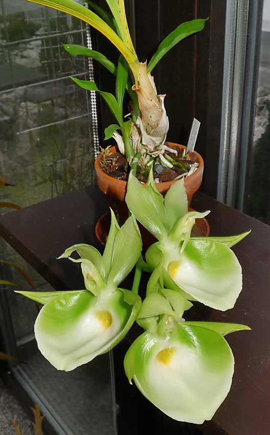 Tak mám zase jedno story o koupě orchideje. Nedávno mi kvetlo Catasetum pileatum "Oro verde" od pokojovky.cz. Krásná kytka. Kdysi jsem si ale objednal malinkou rostlinu téhož Cataseta z Orchids-shop.eu. Nyní mi vykvetla a jak jsem dohledal tak jde o Catasetum pileatum "green-gold" -tedy opět něco jiného než jsem objednal. Ještě mám Catasetum pileatum v. imperiale které mi zatím nekvetlo. Mělo by kvést červeně, tak doufám, že nevykvete třeba bíle