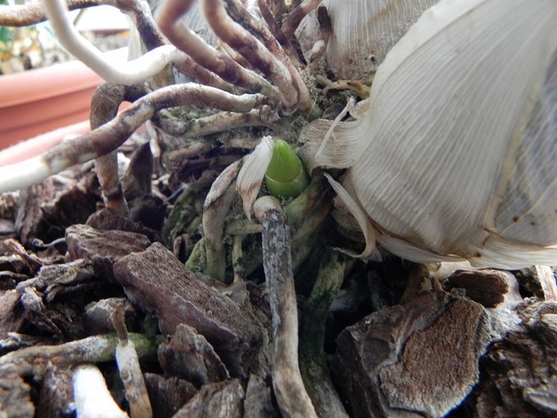 Ta kůra je spíše střední hrubost( ta fotka zvětšuje) a je zasazena jen v té kůře, žádná jiná příměs ani mech, nic, od zasazení jsem tu kytku nepřesazovala a nemám to v úmyslu, no a nezalívám dokud nenarostou kořínky a pak to budu jen postřikovat dokud kořínky nezarostou do kůry, pak teprve zaliju a začnu s hnojením, je to potom fofr jak to roste.