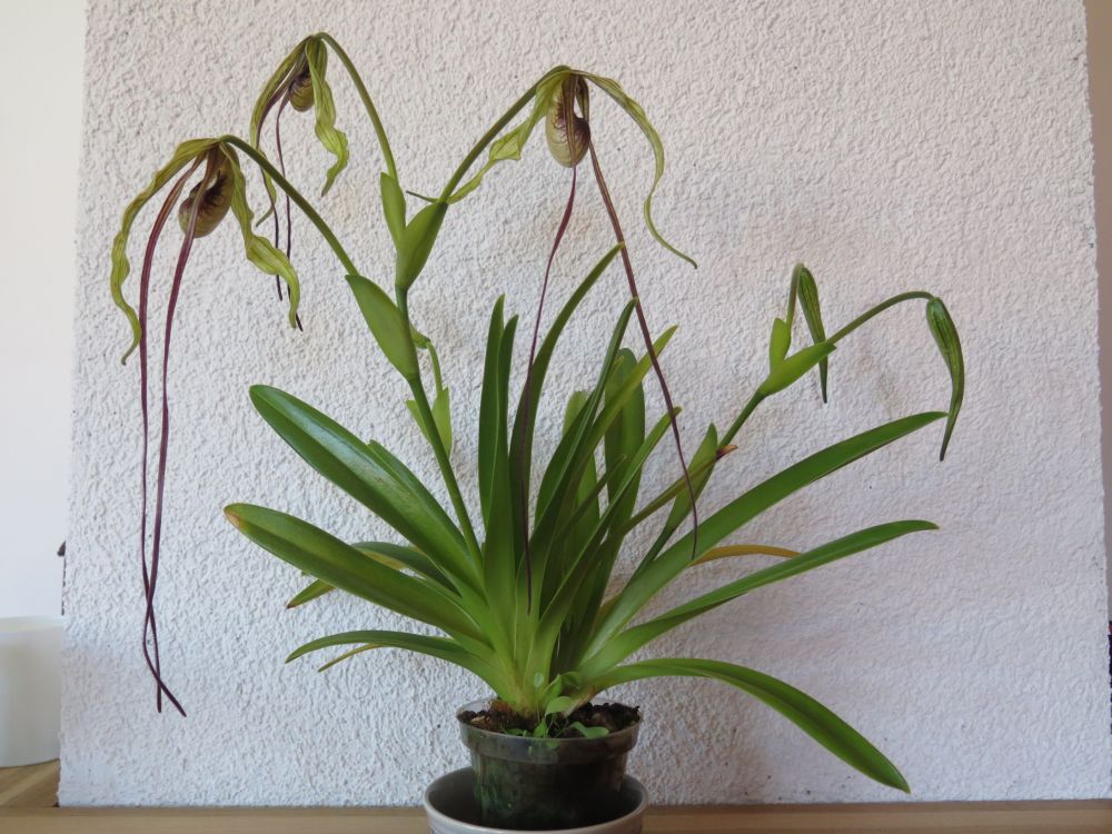 To moje caudatum taky neustále prodlužovalo fousy, ke kytce to bylo nějakých 40 cm a někde se četl, že jak se to dotkne něčeho tak to přestane růst. Účel je splněn opylovači mohou nahoru, tak proč se namáhat. Nicméně to rostlo dál a na těch 70 cm jak bylo slíbeno při koupi rostliny. Foto jsem nepořídil, proti černé to nebylo vidět a bílá mě nenapadla. Do kurzu se nehlásím, taky to mám daleko