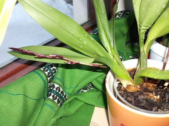Tak jsem cela nadsena....cattleye mi nechtely kvest. Tohle je jeden hybrid, co ani nevim, co je zac ....ale nicmene je to cast rostliny, kterou jsem oddelila pred 2 lety a ma mati ji uspesne jako jedinou pestuje a kvete... :?: :shock: