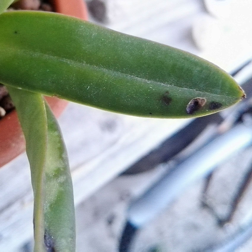 Tak jsem prošel těch pár rostlin co mám a našel dvě co bych rád prokonzultoval. První je Epicattleya Plicaboa. Stará, velmi vitální a silná rostlina, spolehlivě kvetoucí, pěstovaná velmi tvrdě venku na slunci, čerstvém vzduchu a teplotách co právě venku panují. Vytvořila novou mohutnou pahlízu a chystá se kvést. Ale na listech se tvoří postupem času hnědé skvrny a konce listů postupně usychají. Nové listy jsou samozřejmě v pořádku. Žádné světlé nekrotizující skvrny jsem nenašel. Listy jsou buď zelené a velmi pevné, nebo pak s hnědými skvrnami. Druhá rostlina je Laelia mantiqueira. Rostlina opět velmi bujně roste a dělá pevné listy. Opět pěstovaná na čerstvém vzduchu a slunci. Tady je opačný problém. Staré listy jsou parádní, neflekatí a jsou beze skvrn. Jsou pevné, tvrdé a lehce zafialovělé od slunce, nic dramatického. Ale poslední výhony mají sice také pevné, ale deformované listy. Má jakoby reliéf. Část listu je stejně sukulentní jako ostatní, část je jakoby tenčí. Na poslední vyzrálé pahlíze se na listu utvořila hnědá skvrna. Ještě jeden ze starších listů má také jednu. Díval jsem se na vytvářející se nové a na novém listu je ten reliéf vidět také. O tuto rostlinu mám velké obavy. Nerad bych o ni příšel protože je to skutečně vitální rupikola. Ještě tedy nekvetla, takže květ nevím jestli bude mít změny. Omlouvám se za kvalitu fotek - foceno mobilem.