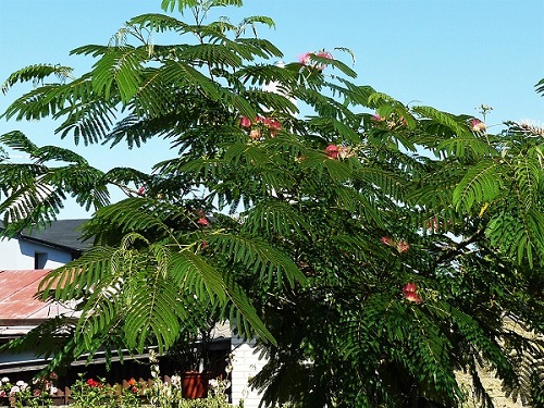 Jo nevšimla jsem si názvu , jsou nádherné..Míra píše:Je to pod obrázkem. Strom nebo keř(záleží jak se zapěstuje. Jde o perskou akácii z rodu mimózovitých. Na snímku je vidět, že ráno ještě spí, protože má zavřené listy, které zavírá navečer a cca okolo 7 hodiny ráno je otevírá a vypadají jako palmové listy. Květy nádherně voní. Dám foto, až bude více rozkvetlá. Dá se pěstovat i jako bonsai. Tento duh Albízia Julibrissin když je starší a vyzrálá ve dřevě snese i -20°C. Tři roky jsem ji přes zimu zakrýval ale podařilo se. Letos tu tvrdší zimu přežila bez krytí. Dost uniká jarním mrazům, protože začíná obrážet až koncem května nebo začátkem června, takže má člověk dojem, že zmrzla. Ta starost se ale vyplatí byť stromek je poněkud dražší. Strom je to nádherný deštníkovitého tvaru. Těším se, až bude časem celá obsypaná květem. Kvete celý srpen až do konce září.evulka píše:Jo jo ibišky mám také i stejnou barvu , jsou moc krásné ..