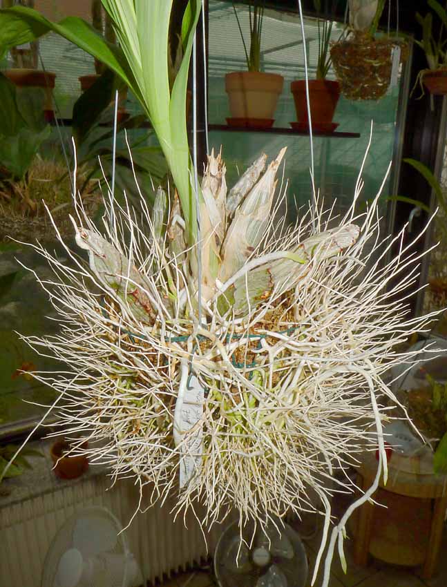 Catasetum, které mne nejvíce zlobí se jmenuje C. expansum. Vybudovalo rozsáhlý kořenový systém, krásně roste a tlačí silné výhony, ale zatím ještě nekvetlo. Bude to možná pro mne takové druhé D. senile :) .