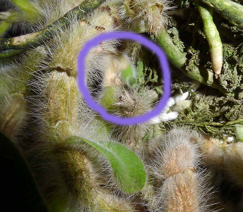 Zatím jsem pouze na třech pahlízách zpozoroval rašící pupeny. Nejdelší viz aktuální foto má cca 4mm na délku. Je to tedy v úplném zárodku. Ostatní pahlízy jsou dokončené. Kdybych chtěl vše dopěstovat a dal tomu dobré podmínky tak bych to viděl v tomto případě spíše na konec vánoc. Rostlina je ale dosti olistěná a tak i při svícení by polovina výhonů rostla pod listím a byla by dlouhá a neduživá. Skoro si myslím, že až na to kouknete, tak Vy i Karlos se asi přikloníte také k mému řešení. I v přírodě se asi stane že rašení může nastat na podzim, ale přeci když je to v zárodku tak rostlina nebude dělat potom v období sucha celé výhony a neporoste dalších 3,5 měsíce. Mohla by také vysílením chcípnout. Skončilo by to tedy jako loni s výhony o třech až čtyřech listech a konec. Takhle si myslím trochu seschne tak za 14dní a pak se růst zastaví a po určité době začne žloutnout listí. I když bude mít delší odpočinek než v Laosu bude v dobré kondici.