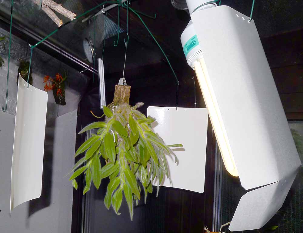 Vy máte jinak se chovající rostlinu, která dělá o dva listy na pahlíze méně. Jelikož Vám kvete v zimě tak stíhá dvě pahlízy za vegetaci. No sám jsem zvědavý jestli se mi kvetení v období klidu povede. Jinak teploty budu mít letos u úsporky stejné jako Vy a světlo do 30000lx. Na jaře myslím samamalo někde našel že se má přisvěcovat 30-35 tisíc luxů. Okolo něj mám nyní tolik světla, že když tam jdu něco dělat tak si beru brýle proti sluníčku abych neoslepl. Ta úsporka 125W je dělo. 5cm od trubic dává 60000lx v rozptýleném světle. Taková privilegia oproti jiným druhům by měla ta kytka ocenit