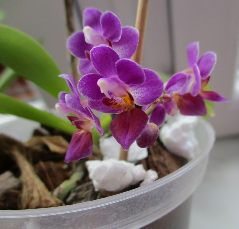 Phal. buyssoniana je jako zvětšená pulcherrima s červenými květy. Měla by být tetraploidní, jenže jsem míval dvakrát větší rostlinu s většími květy. Snad časem udělám mikroskopický preparát a uvidí se.
