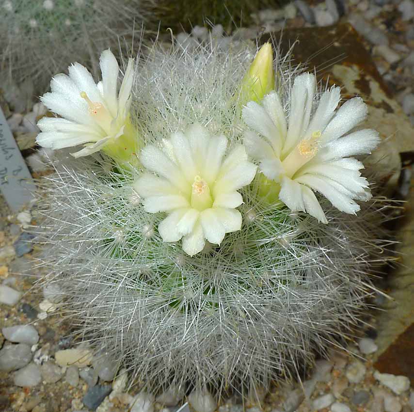 Bílá forma Mammillaria senilis na čtvrtém snímku shora je mezi kaktusáři hodně vzácná.