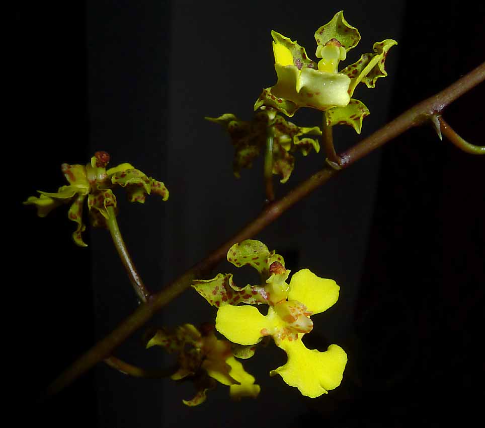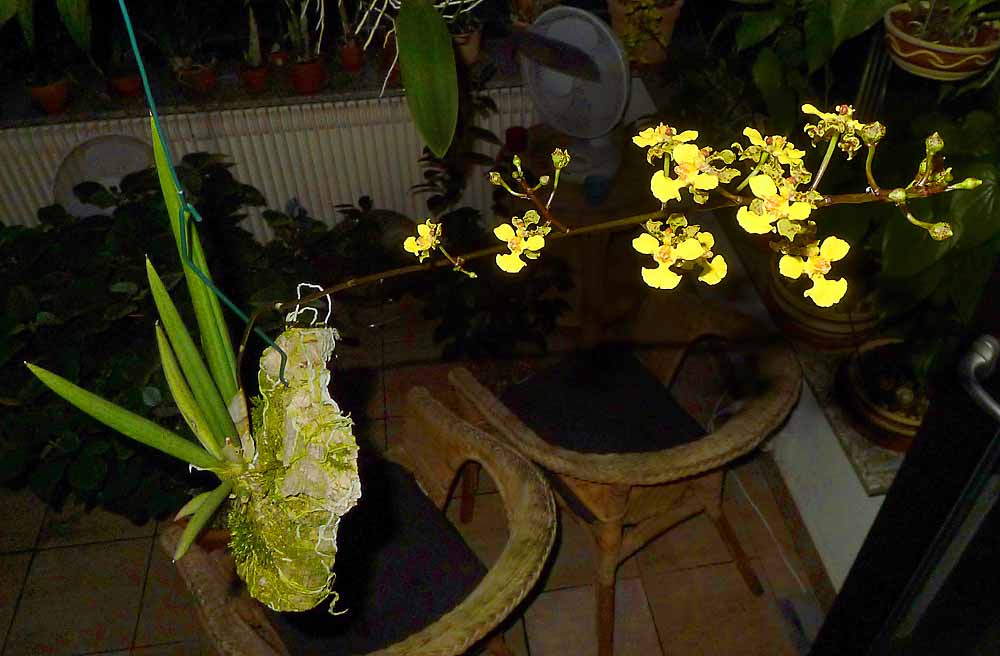 Oncidium cebolleta již rozkvetlo. Zkoušel jsem samoopylení. Je to práce pro hodináře. Bez lupy, čelovky a brýlí bych byl ztracen. Dva květy co jsem opylil tak do druhého dne uvadly a ty co jsem z nich odebral brilky také. Tak snad se vyvine nějaký plod. Budu doufat