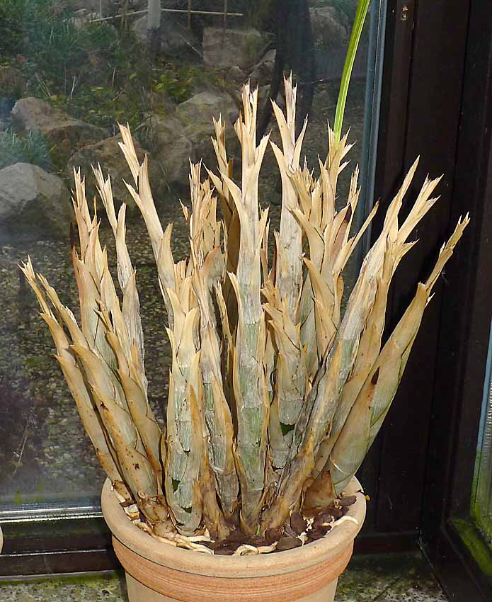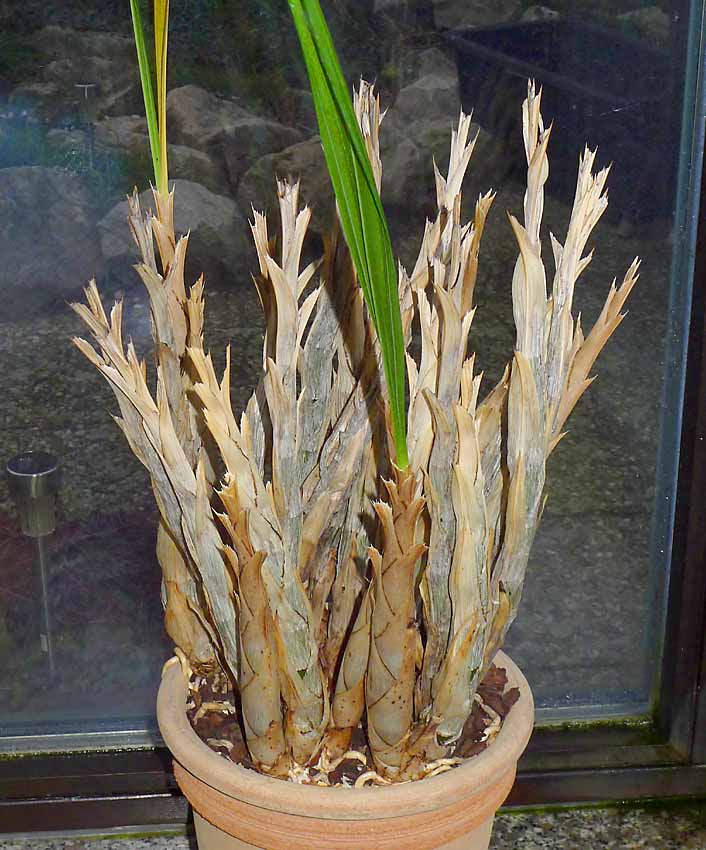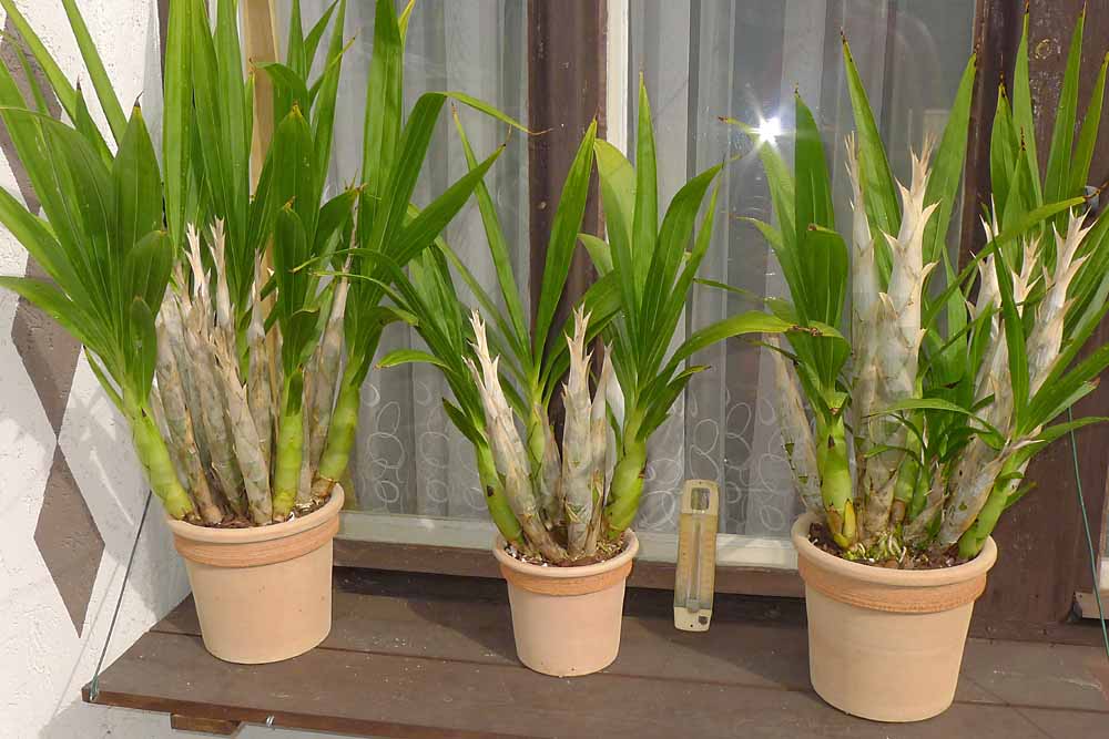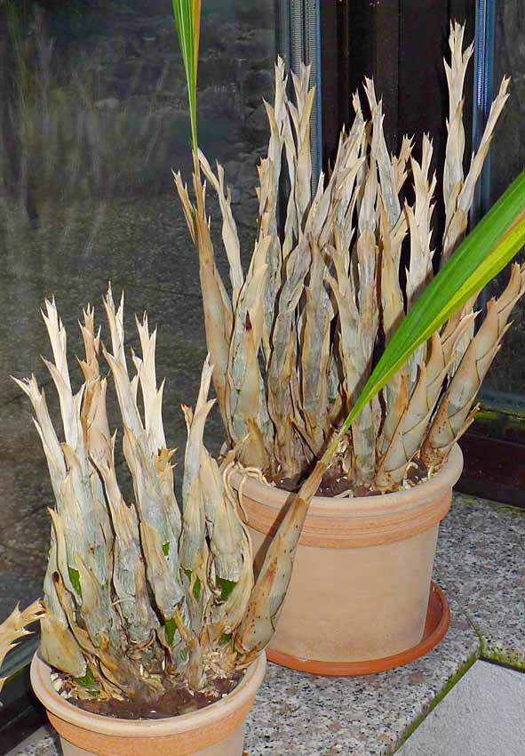 Zkouším také novou techniku fixování uříznutých pahlíz při rozmnožvání. Pahlízu přilepit chemoprénem k bambusové tyčce a tu zapustit do substrátu. Za dva až tři roky by se měla v zemině rozpadnout a rostlina dále růst bez opory.