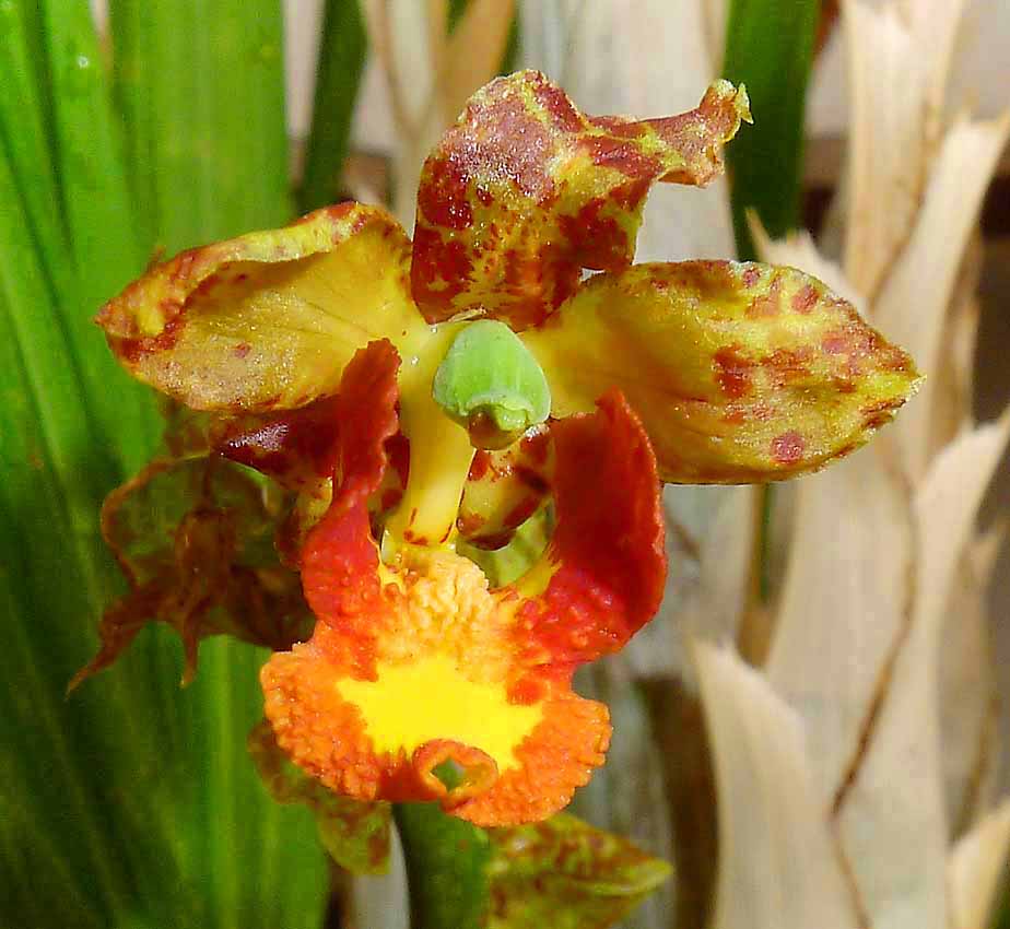 Na jaře mi nasadilo na květ Cyrtopodium z lokality od Tuly, Tamaulipas, Mex. Ještě nikdy nekvetlo a mělo jeden květní stvol. Než jsem si všiml tak ho dokázala zpustošit třásněnka západní. Květy postupně opadávaly i po postřiku a zůstal jeden a ještě k tomu mizerný. Nakonec ale dorostl tak, že se otevřel a díky tomu vidím, že je to také punctatum a květ je podobný tomu co mi kvetlo loni od pressa Zimapan, což je asi 300km vzdušnou čarou.