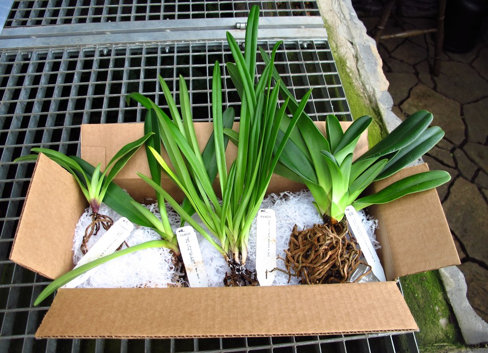 Musím to vykecat .Měla jsem příležitost získat od Orchid Inn, Ltd. pafíčka. Bylo to lákavé protože kytky nešly poštou.A tak i já mám konečně Paphiopedilum haynaldianum je to kytka uplně vpravo no musela jsem asi být hodně hodná protože pafíčka jsou nádherný.Teď to je teda už na mě .....