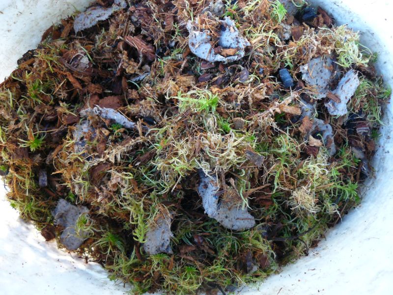 Tak jsem dnes zkusil "obětovat" jednu rostlinu a zasadil jsem ji do substrátu, který by měli používat v Německu. Čistá celulosa + sphagnum. Použito plato od vajec, napuštěno roztokem vody + kys. mravenčí. Uvidíme, co bude vyhovovat víc, jestli stávající substrát nebo tento.