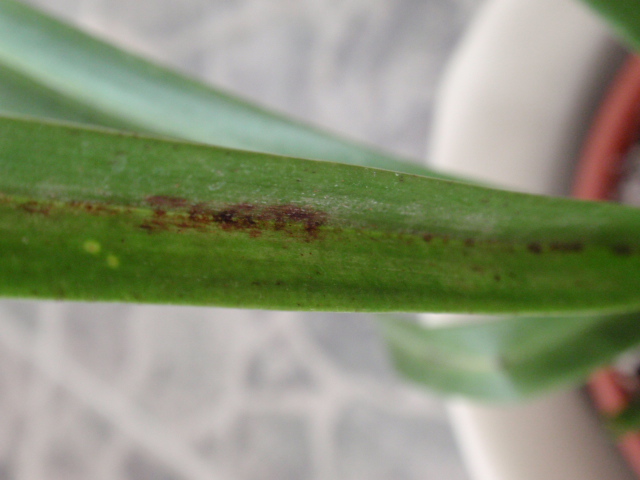 No, ještě se vracím k těm sviluškám. Nikde jsem nic nenašla. Prohlížela jsem opravdu pečlivě, brýle + lupou a nikde nic. No stejně jsem celé listy otřela namočeným tamponem v mospilanu. A Karlosi, tedy u té virózy jsem četla, že rostlina je vlasně už na odpis. To cymbido jsem kdysi přesadila a rozdělila, ještě jsem nevěděla, že je prospěšné ho nechat zaplnit kořeny celý květník. A právě od té doby jsou listy tak postižený. Moc nepřirůstá, je to takový mrzáček, nevím, zdali za týhle situace ho raději nepohřbít. Jo a hlízy jsou takový jako sklovatý nebo jak to nazvat. Tak co myslíte? Ď.