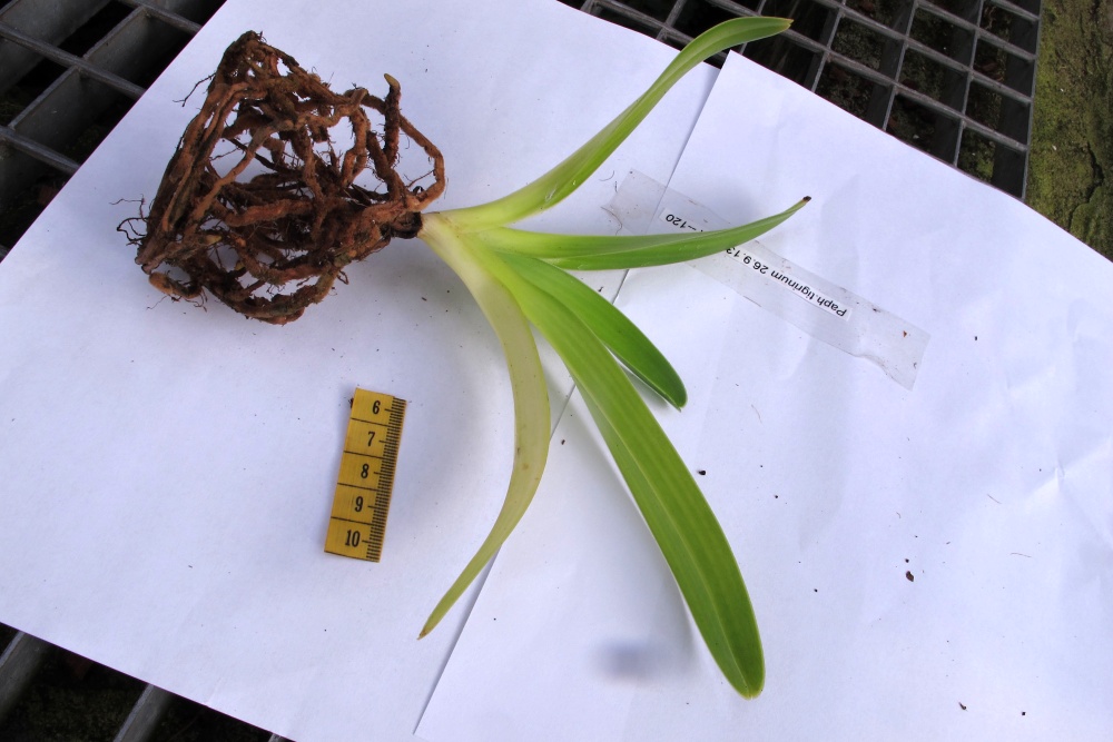 V září 2013 koupen Paph. tigrinum zasazen do substrátu + dost oddenků Osladiče. A teď nevím co si myslet. Oddenky osladiče zůstaly skoro v původní velikosti ale jemný kořínky ještě stačily prorůst substrát. Jak je to možný že pak Osldič nepokračoval v nějakém růstu ,zbyly jen prázdný oddenky. Jak se to dělalo dříve ?