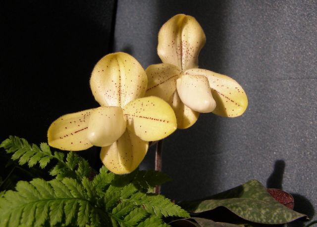 Ještě kvete jeho bráška, ale jenom jedním květem. Paphiopedilum concolor var. striatum pěstuji stejným způsobem jako niveum.