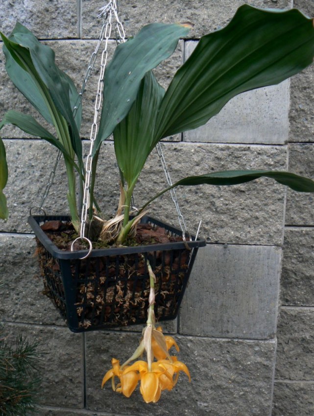 Na stránkách Essence of Stanhopea je vyobrazeno docela dost druhů i kříženců tohoto rodu, tak to zkuste vizuálně porovnat tam. S. anfracta, connata?- nebo tak něco. Myslím, že určení bude dost těžké.