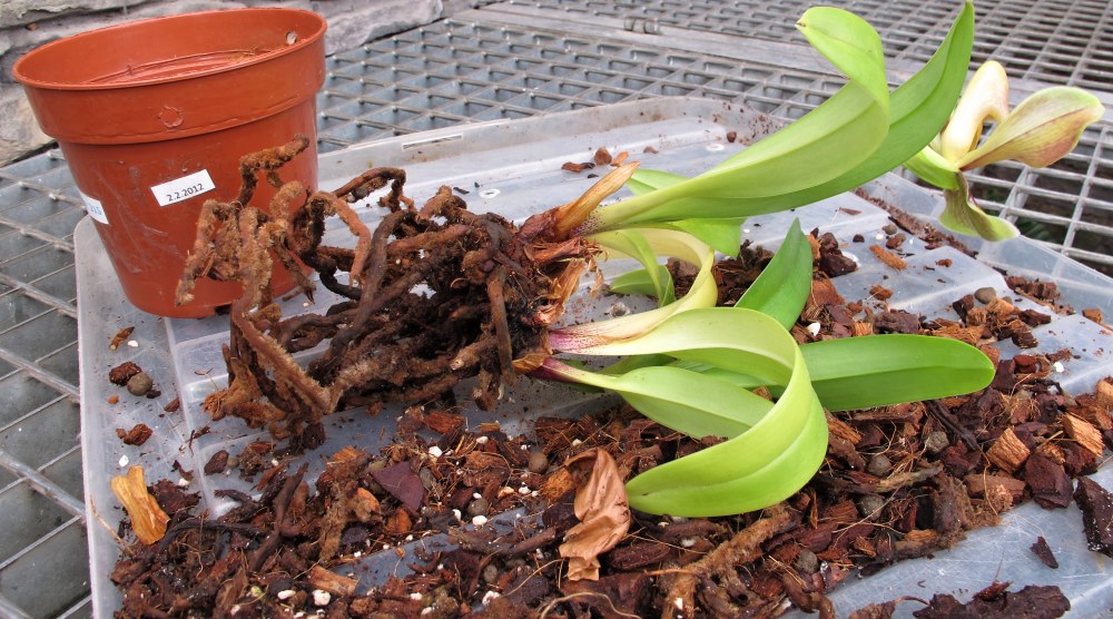 Dám příklad pro výstrahu .Zrovna tohle pafíčko má na květináči strašlivej datum .Taky část kořenů je v čudu ostatní na fotce jsou živé. Tak snad mě to kytka odpustí.