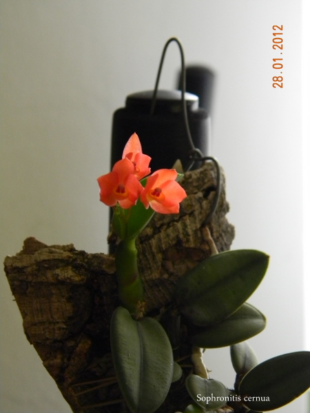 první z letošního kvetení Sophronitisů (a doufám, že ne poslední) je Sophr.cernua. Má drobněšjí kvítky než ostatní z druhu, květů je několik v květenství. letos mám pět poupat, tři už jsou zcela otevřená.