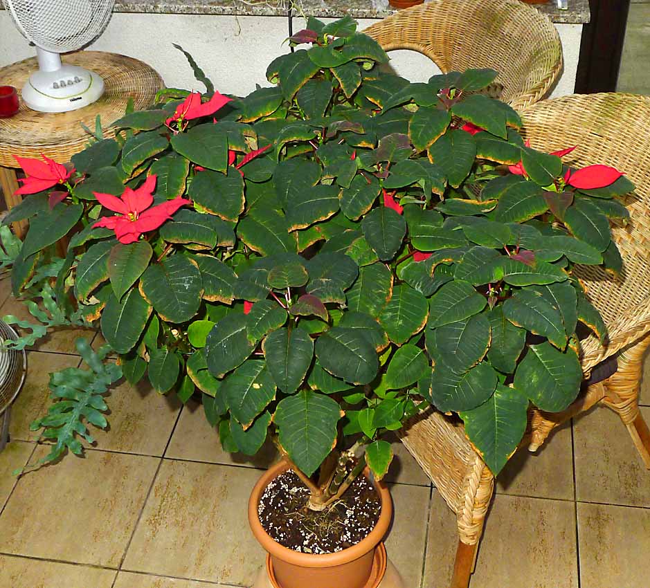 Tak druhá vánoční hvězda se moc nepovedla :cry: . Sice se dala udržet po přesazení v docela dobrém stavu, ale držel jsem ji ve vegetaci až do půli prosince s tím, že oschlé listy odrostou a teprve pak budu zatemňovat a listeny zčervenají třeba až koncem ledna. To se ale nepovedlo, protože kytka pak přestane růst a již se nezbarví a moc nevykvete. Je tedy nutné zatemňování nejpozději do půli října aby krásně zčervenala. Tak snad příští rok už budu vědět jak na ní.