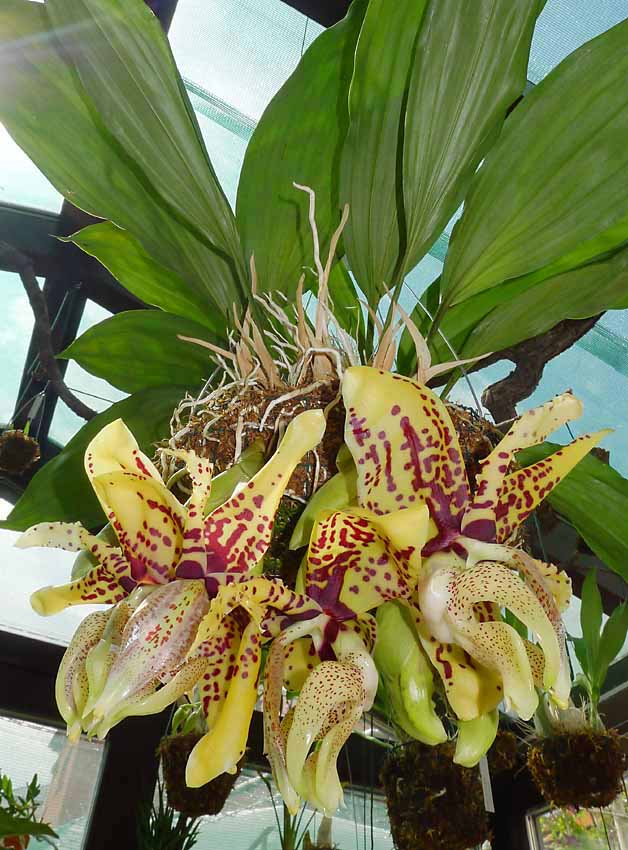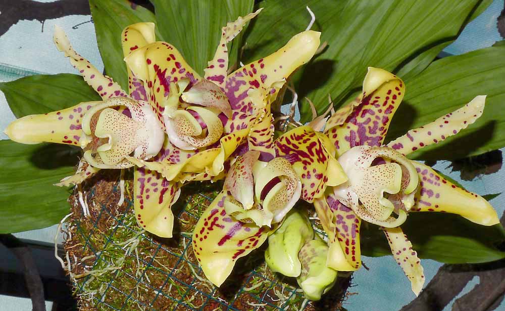 Dnes mi konečně rozkvetl dlouho očekávaný vzorek Stanhopea tigrina. Je to nejsvětlejší forma tigriny jakou mám. Ta nejtmavší pokvete asi za 3 týdny. Fialová kresba je sice trochu jiná než v Mexiku, ale i tak je zajímavá. Stihl jsem to nafotit od začátku rozkvétání. Zajímavé bylo, že první plátek se oddělil zcela nehlučně, prostě se jen tak vypéroval. Celkem hlasité lupnutí se ozvalo až za chvíli, kdy se oddělily boční, největší plátky. Původně jsem myslel, že to lupne na samém počátku otevírání. Tím, že rozkvetly 2 stvoly zcela současně tak vůně v bytě je velmi intenzivní. Po chvíli si ale člověk zvykne
