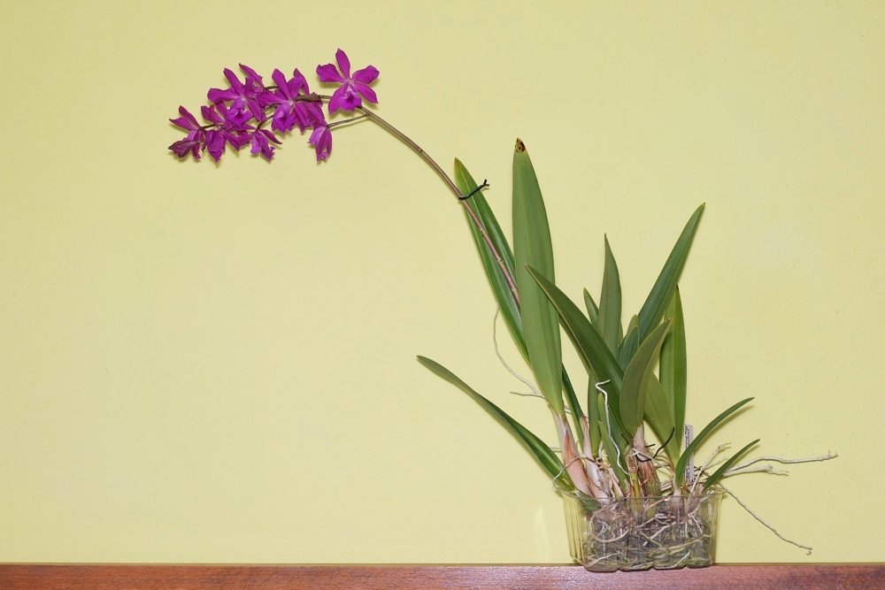 Já ho chci nechat venku co to půjde. Podle Studničky na lokalitě má nejnižší teplotu 0°C. To je ale extrém. Nechám ho tak do + 4-5°C venku společně s Coelogyne cristata a Laelia speciosa. To by mohlo být i do konce října. Rostliny by ale v době nízkých teplot měly být trochu seschlé. Násadu na květ jsem loni pozoroval někdy na přelomu října a listopadu. Kvetlo v únoru ale ne příliš bohatě. Letos bych si přál lepší kvetení. Kytka je již pěkně narostlá.