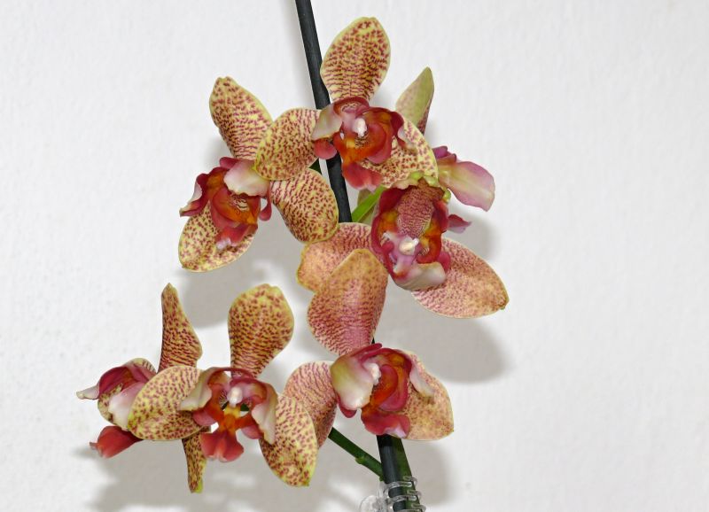 Dle foto - žlutý Golden Jaguar, žlutohnědý peloric, bílo-lila skvrnitý a pak klasický lila, ten je bez fotky (nedávno dárek, ale také přesazeno z původního).
