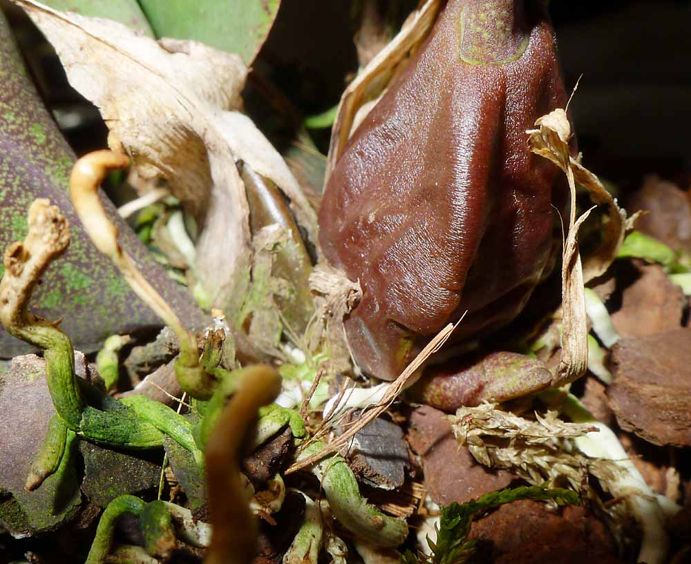 Tak obě rostliny Psychopsis papilio mi začínají rašit asi nový výhon. Obě jsou z Orchids&more. Ten z Drážďan stále jen kvete i když je trojnásobný. Známý mi říkal, že od této firmy na rozdíl od jiných kytky dobře rostou- tak si říkám, jestli neměl pravdu.