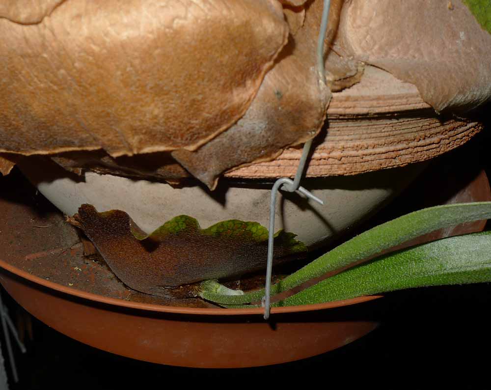 Tak se mi nějak na S. tigrině klube list tak obrovský že jsem to ještě neviděl. Vůbec nevím čím to je :shock: Že by tou dešťovkou s ptačincema? Doufám že pahlíza pod ním bude mít alespoň 8cm a květ příští rok tak 30cm v průměru :lol: :lol: