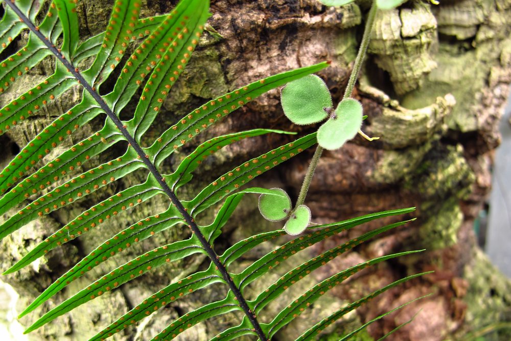 To je právě to co nevím. Kapradina je od pana Ryšavého moje chyba byla- neřekla jsem si hned o název. Při druhé návštěvě kapradina už nebyla a pěstitel si na ni nevzpomněl. Ale jak mu rostla mě dostalo ,proto ji mám. Na opravdu holé kůře trčela velká kapradina. Dala jsem ji do chladna s tím že až tak neporoste. Je tam i ten Lecanopteris a nějaký Pirrosie .Vlastně ta neurčená kapradina vyrůstá pod Lecanopterisem. Všechno se to nějak propojilo a kapradina roste. Chce dost vody když ji nemá kroutí se. Má tuhý listy posílám ti i výtrusnice. NetušímKarlos píše:Haki: co je ta kapradina na pozadí paphia u toho lecanopteris? Připomíná mi to rod Pecluma, ale ta by asi epifytiky nevydržela.