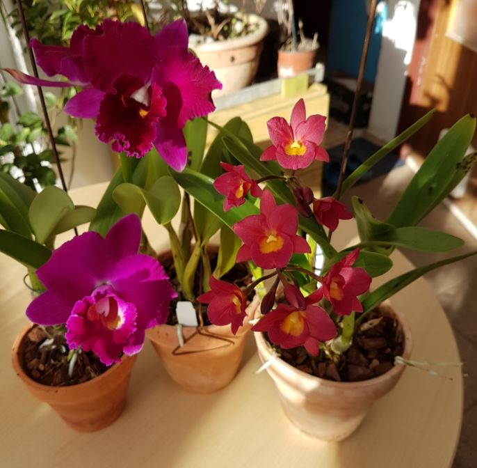 No a máme čas Dendrobií. Takže všechna co kvetou. Dvě z nich jsou bez názvů. Rozdíl mezi D. nobile a D. nobile var. luxurians je v sytosti barvy a hlavně velikosti květů, kdy luxuriáns je jednou tak velký květ.