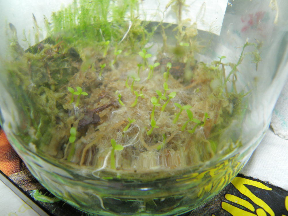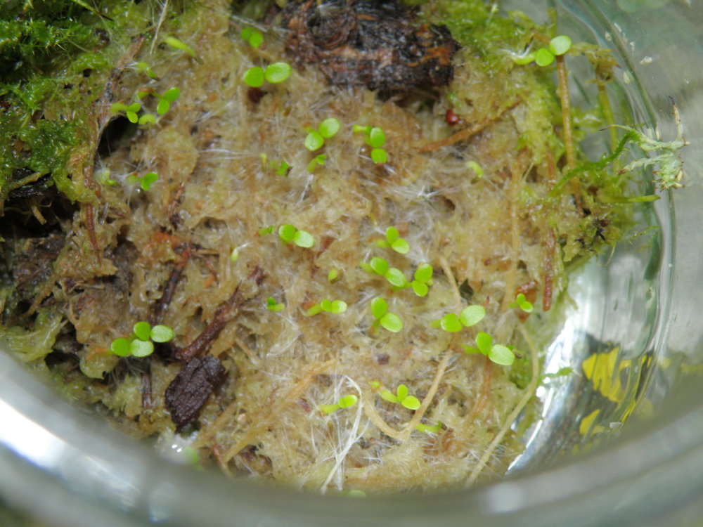 Musím se pochlubit a mám k tomu opravdu důvod .... celé tři jsem se o to pokoušel - vyséval na různá místa a hledal optimální kout v paludáriu - a až nyní jsem , jak už to bývá, čirou náhodou přišel na to jak vysít semena Dischidie pectenoides....prostě je rychle za čerstva seberete, no spíše popadnete za jejich chmýří , a šoupnete je na hodně vlhkou drť rašeliníku který napěchujete na dno sklenice, celek umístit pod okno, kam nepronikají přímé sluneční paprsky