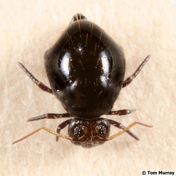 Je znatené: tělo s dvěma tečkami na každém boku, hlava s tykadly, dále vidím asi šest nožiček (čtyři z těla a dvě mezi tělem a hlavou ???