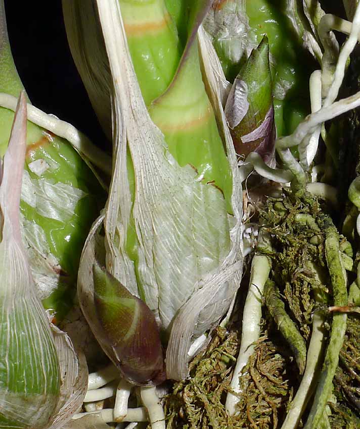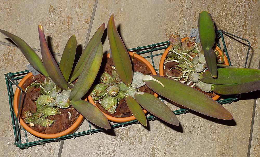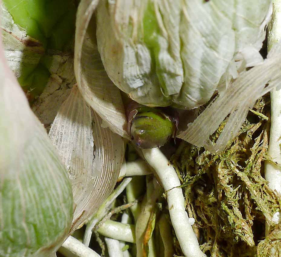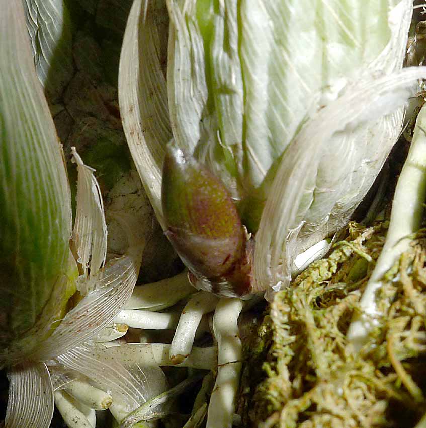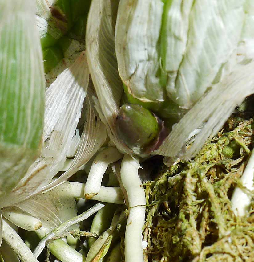 Nikdy by mě nenapadlo, že mi nasadí tři poupata a o všechna přijdu :cry: Největší mělo asi 2,5cm a při pitvání už byla viditelná i kresba na pysku. Vlastně pořádně nevím ani čím to bylo způsobené. Všechna odešla stejným způsobem. Shnila zevnitř. Už jsem skoro chtěl napsat že je to jednoduchá kytka skoro jako Coelogyne cristata pouze s tím rozdílem, že kořeny musí po zálivce rychle oschnout a od října do dubna se musí nechat úplně nasucho. Takhle mě ale vypekla :(