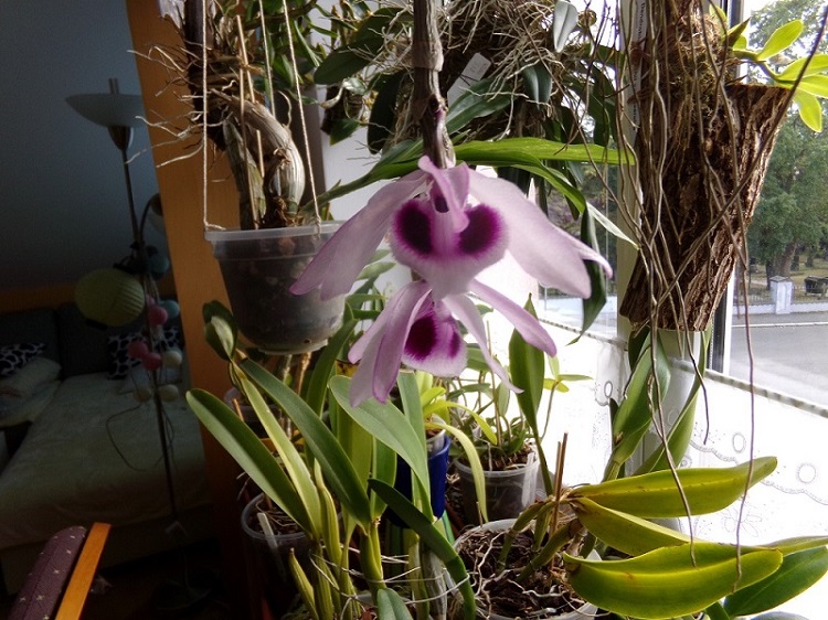 Pěstování prosté, na jižním okně, každý den rosím, kdybych měla velkou nádobu s dešťovkou, tak bych ho máčela celé. V zimě výrazný přísušek a lehké snížení teploty, nic extrémního, bylo v ložnici. Kromě květů vyhání jeden nový velký růst a nové růsty vyhánějí i loňské malinké keiky, to vypadá docela legračně