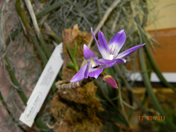 Na fotce je vidět, jak postupně mění barvu - poupě spíše fialové, květ jde po rozvití víc do modra.